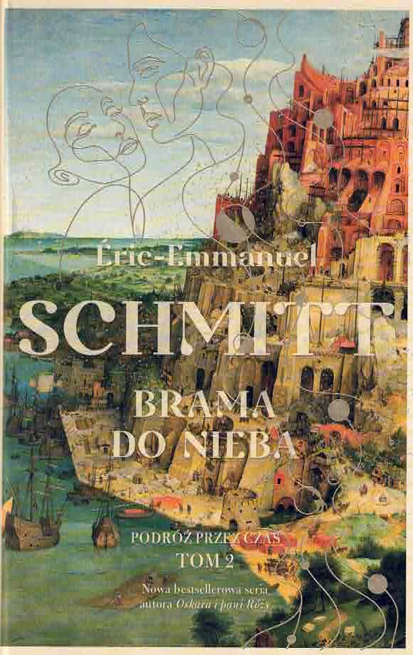 Bohater wyrusza w długą i niebezpieczną podróż, by odnaleźć tę, której pragnie od zarania dziejów. Gdy dowiaduje się, że władca Babelu Nimrod szuka najpiękniejszej kobiety na świecie, Noam wie już, że obaj mają ten sam cel, a tyran skrywa prawdę o swojej przeszłości... Tymczasem z rozkazu króla zastępy niewolników wznoszą wieżę, która ma sięgnąć nieba, wynieść człowieka do rangi bogów. Czy taka zuchwałość może pozostać bezkarna? W drugiej części serii Podróż przez czas Éric-Emmanuel Schmitt z odłamków najpiękniejszych i najważniejszych dla naszej kultury mitów układa zachwycającą epickim rozmachem mozaikę. Losy pary bohaterów - pełne namiętności i konfliktów, rozstań i powrotów - mistrzowsko łączą się z historią wieży Babel, Abrahama oraz Gilgamesza. "Brama do nieba" to także studium władzy, tyranii i ludzkiej pychy, w obliczu wojny i narastających napięć społecznych uderzająca swoją aktualnością.